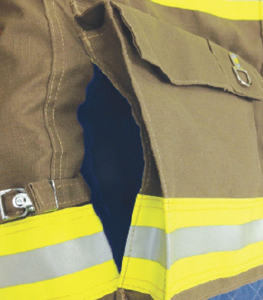 One of the most prevalent ingress of particulates in bunker gear is up the pant legs. The Telescopic Waterwell blocks particulates allowing ample movement while preventing the cuffs from riding up, and blocks thermal ingress from situations where a heat source is below you.